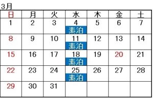 素泊と記載の日付は夕食と翌日の朝食提供がございません。