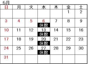 当館は、上記の日程で館内メンテナンス等により休館とさせていただきます。